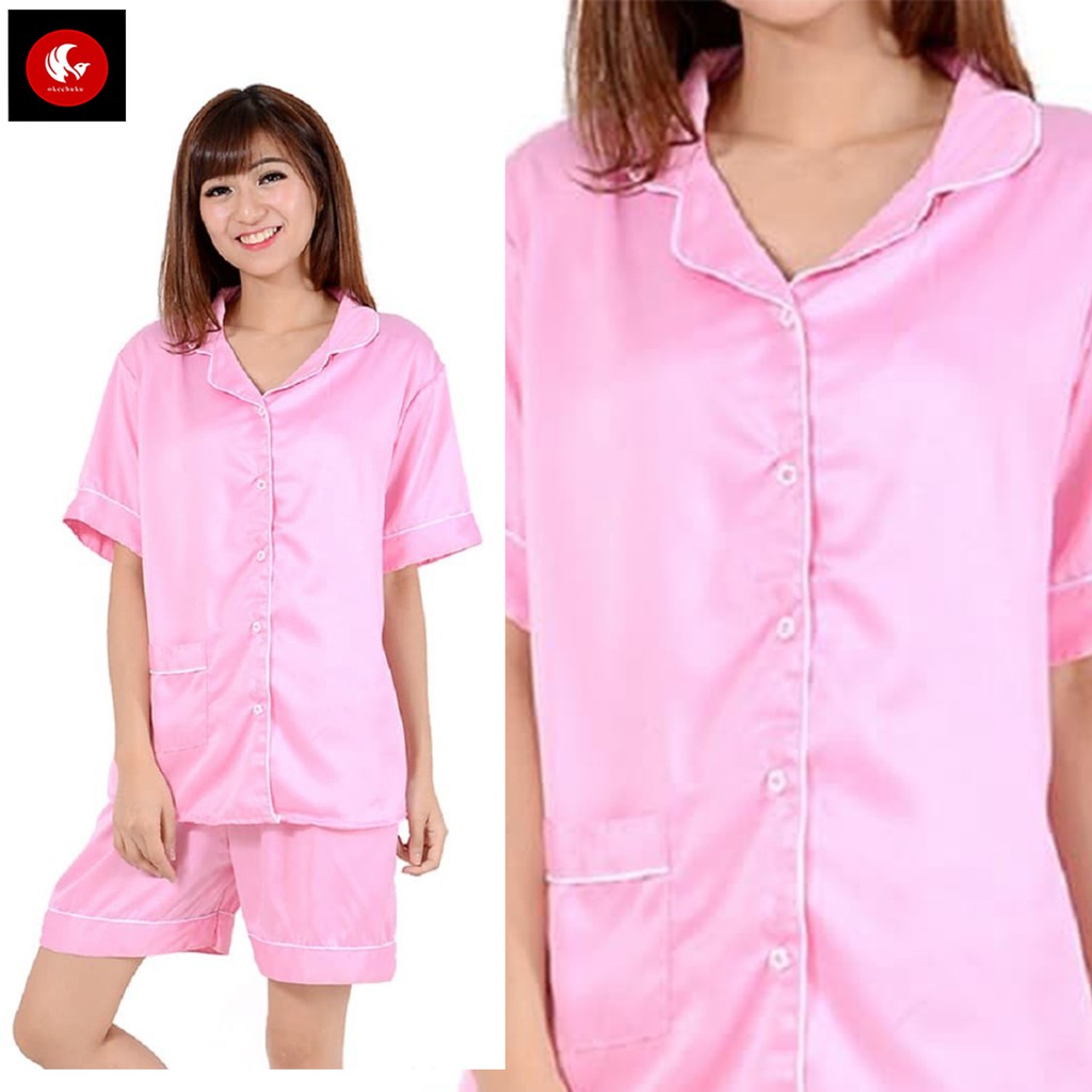 Okechuku Baju Tidur Setelan Piyama Wanita Bahan Silky Polos Ss Shopee Indonesia