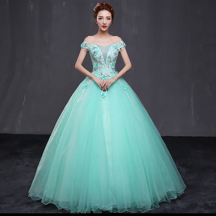 Gaun Pengantin Warna Hijau Tosca Shopee Indonesia