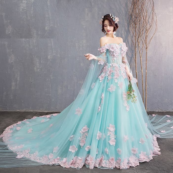 Gaun Pengantin 0351218 Hijau Tosca Ekor Wedding Gown Shopee Indonesia