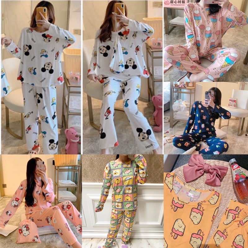 Stylise Piyama Wanita Import Lengan Panjang Kartun Fit to XXL 4018 -2. Sebab pakaian tidur yang satu ini memiliki bahan yang tipis menjadikan kamu tidak sesak nafas juga tidak panas. Baju tidur lengan panjang sangat direkomendasikan untuk kamu.