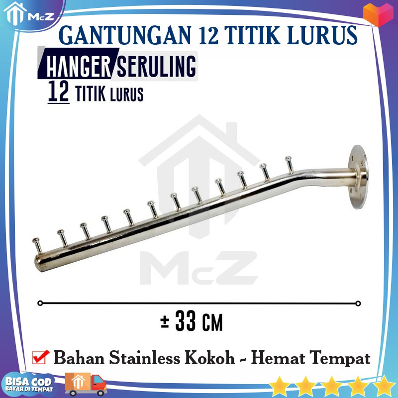 Gantungan Baju 12 Titik Lurus P 33cm Stainless Tempel Tembok Gantungan Baju Dinding Besi Gantungan Baju Besi Stainless Gantungan Baju Tempel Gantungan Baju Stainless Gantungan Baju Hanger Suling