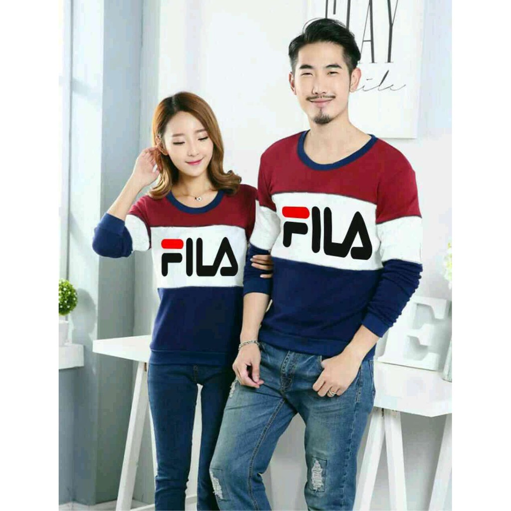 Kaos Couple Baju Couple Kaos Pasangan Baju Pasangan Fila Lengan Panjang Shopee Indonesia