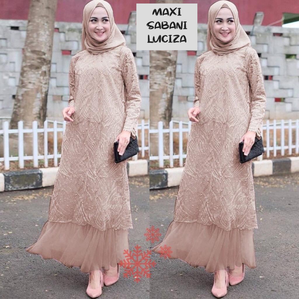 Wanoja Baju Pesta Muslimah Stevia Maxy Dress Pakaian Wanita Baju Kondangan Brukat Tile Elegan Shopee Indonesia